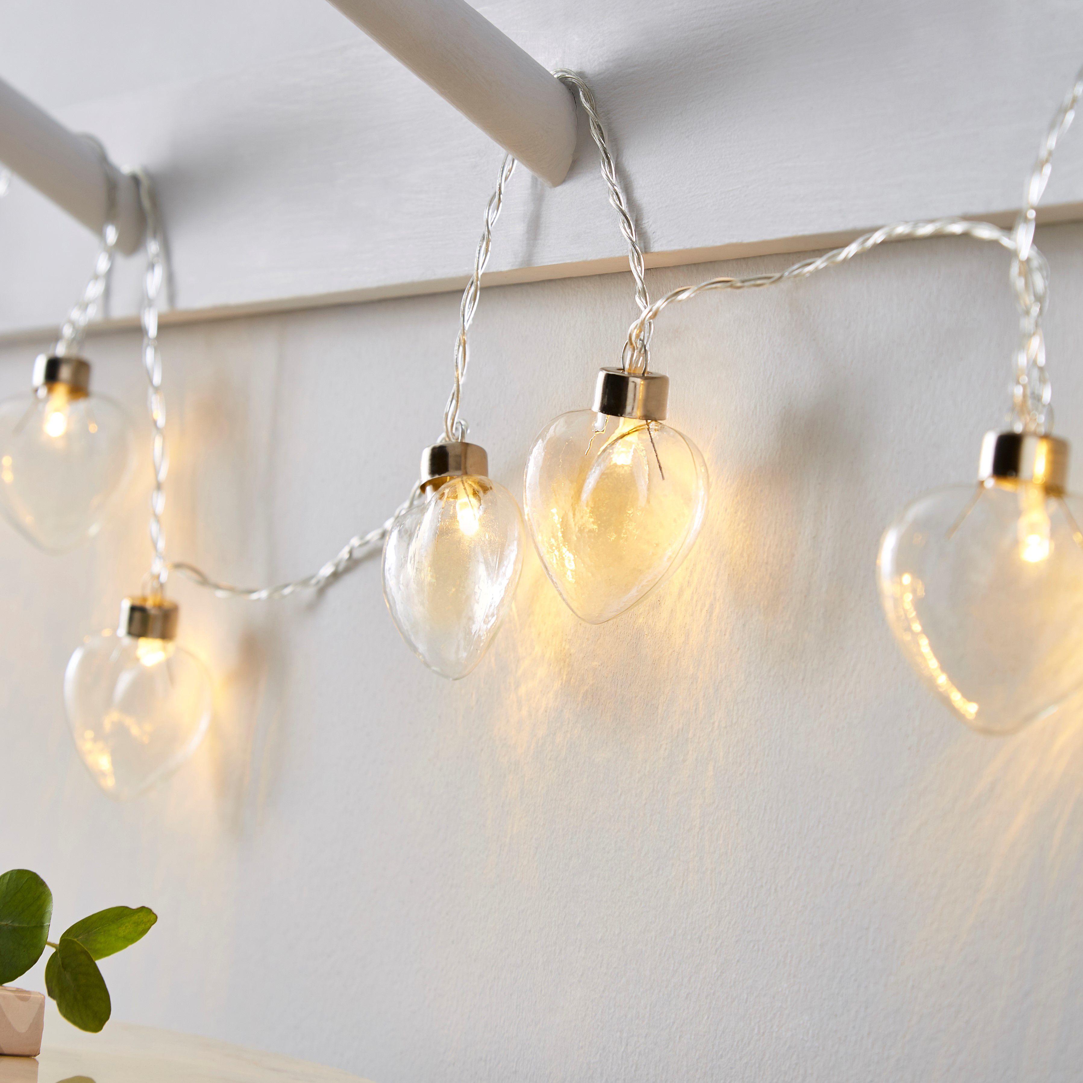 Battery operated string lights are ideal to hang anywhere in a room to create a warm glow.
